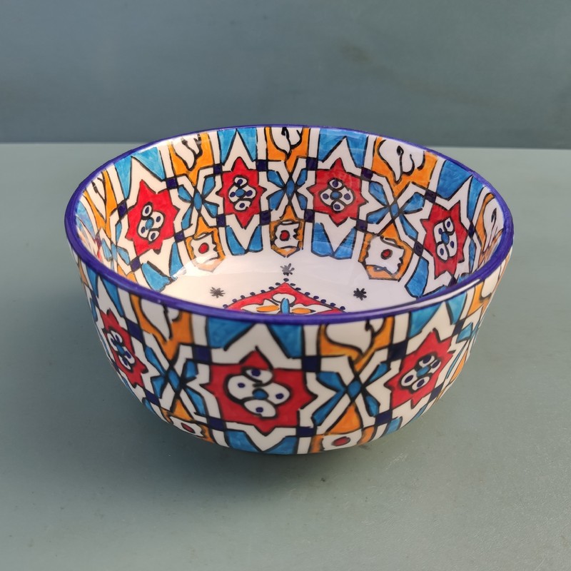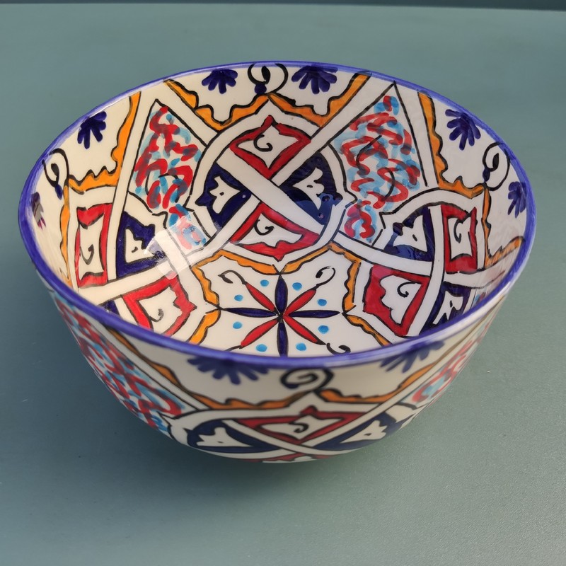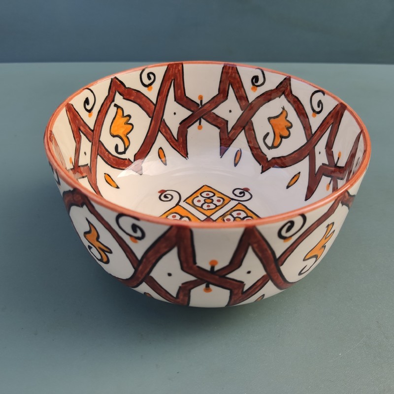 Cuenco de cerámica marroquí hecho y pintado a mano por los mejores artesanos alfareros de la ciudad de Fes. •…