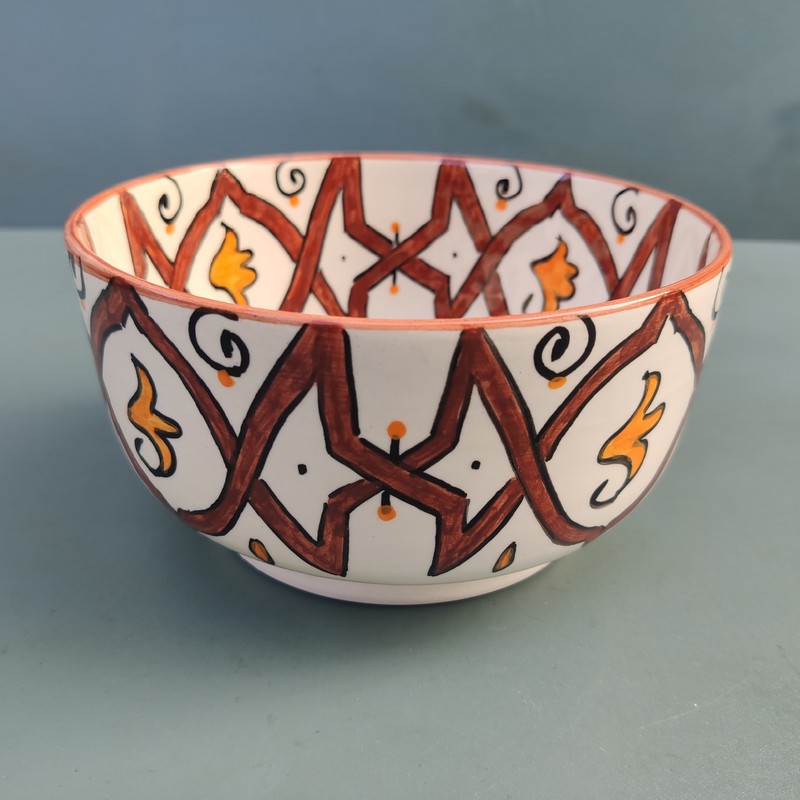 Ensaladera de cerámica blanca de primera calidad hecha y pintada a mano por los mejores artesanos alfareros de la ciudad de Fes.