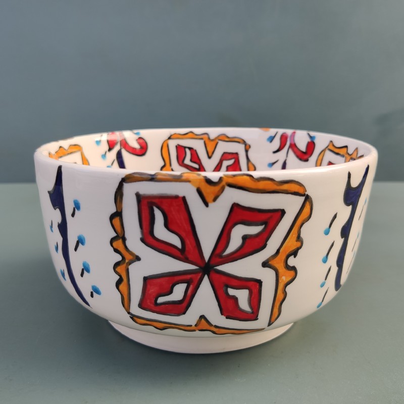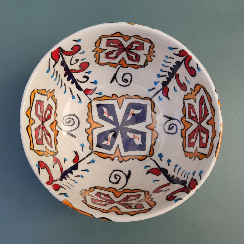 Los artesanos utilizan la técnica del “doble horneado”, cuando la arcilla ha obtenido su forma y ha sido horneada 6 horas en horno tradicional a una temperatura de 900 grados, se pinta y se cuece de nuevo para darle estos colores brillantes, un sello distintivo de la cerámica marroquí.