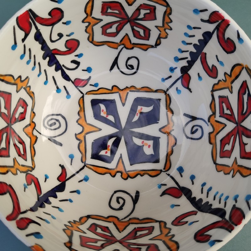 Ensaladera de cerámica blanca de primera calidad hecha y pintada a mano por los mejores artesanos alfareros de la ciudad de Fes.