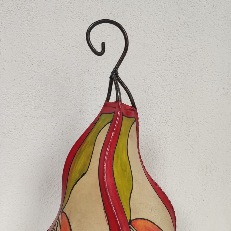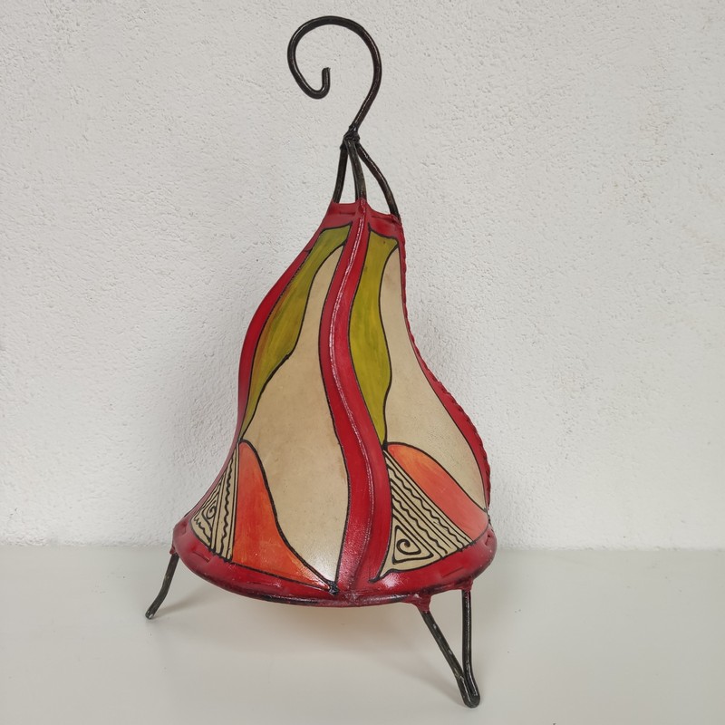 Lámpara de piel decorada con Henna y pintada a mano en la Medina de Marrakech.