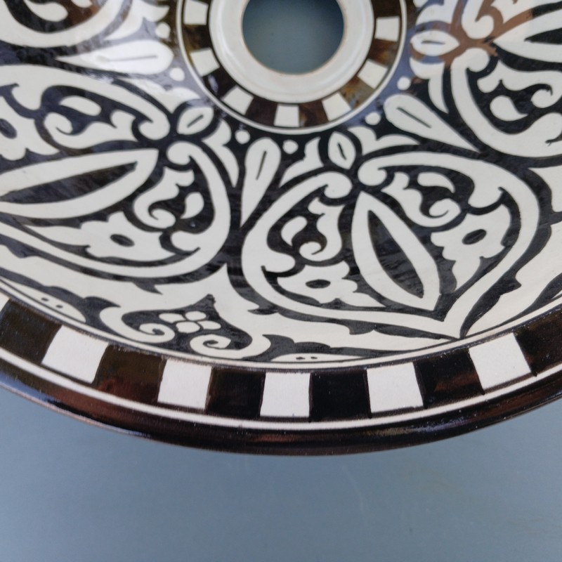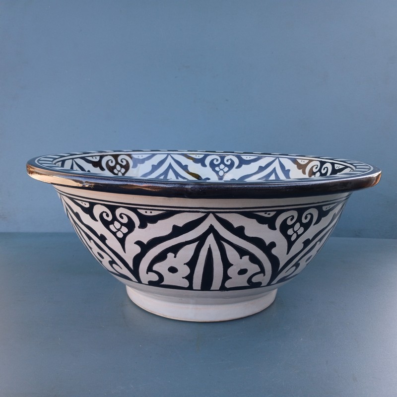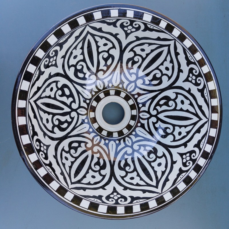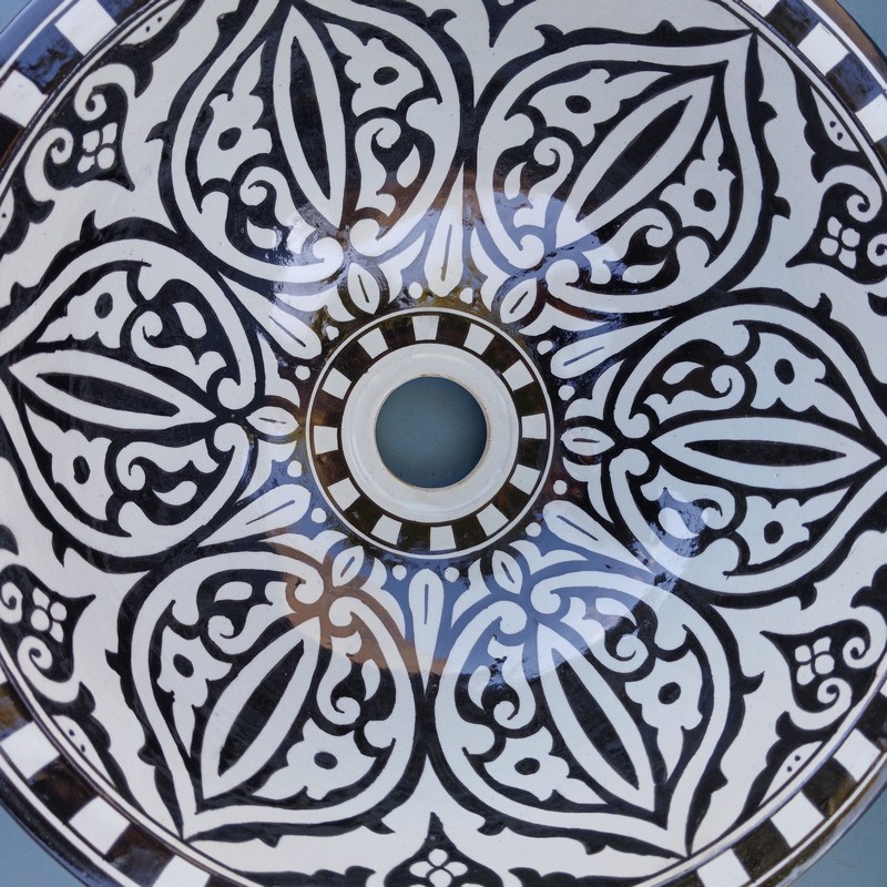 Lavabo de cerámica artesanal marroquí de primera calidad. Hecho y pintado a mano por los mejores artesanos alfareros de Fez, ciudad alfarera por excelencia.
