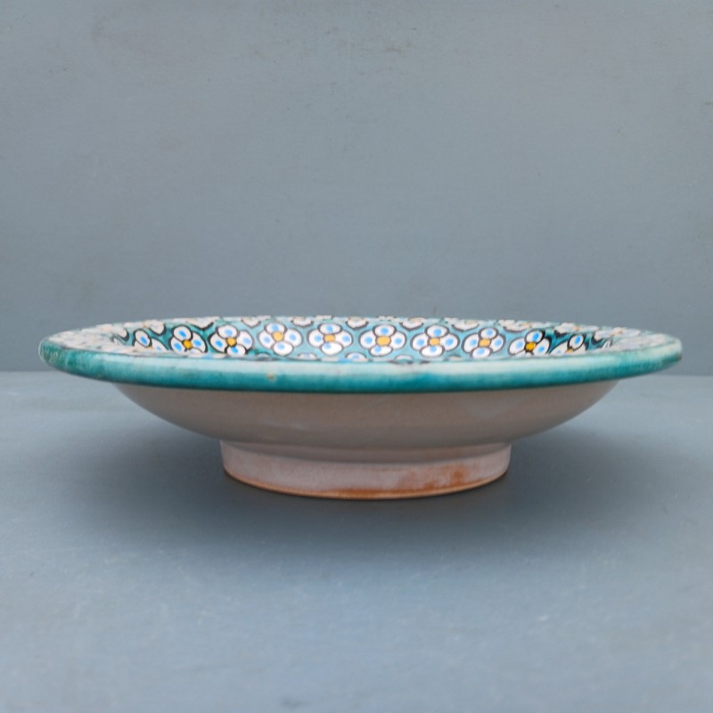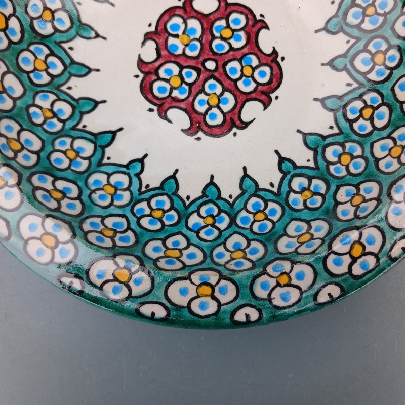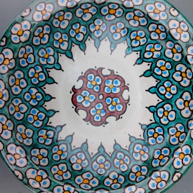 Plato de cerámica marroquí hecho y pintado a mano por los maestros alfareros de la ciudad de Fes. Ideal para decorar una estancia, colgar en nuestro patio o servir nuestra comida favorita.