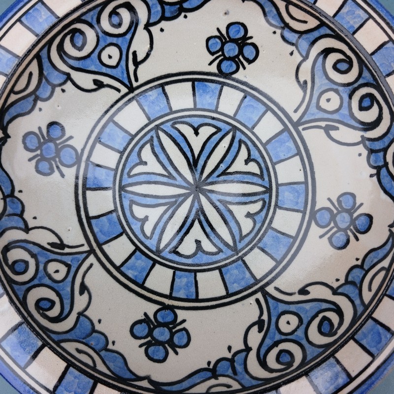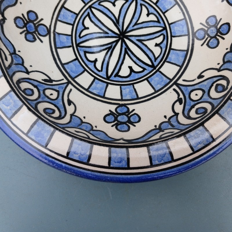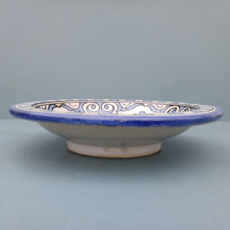 Plato de cerámica marroquí hecho y pintado a mano por los maestros alfareros de la ciudad de Fes. Ideal para decorar una estancia, colgar en nuestro patio o servir nuestra comida favorita.