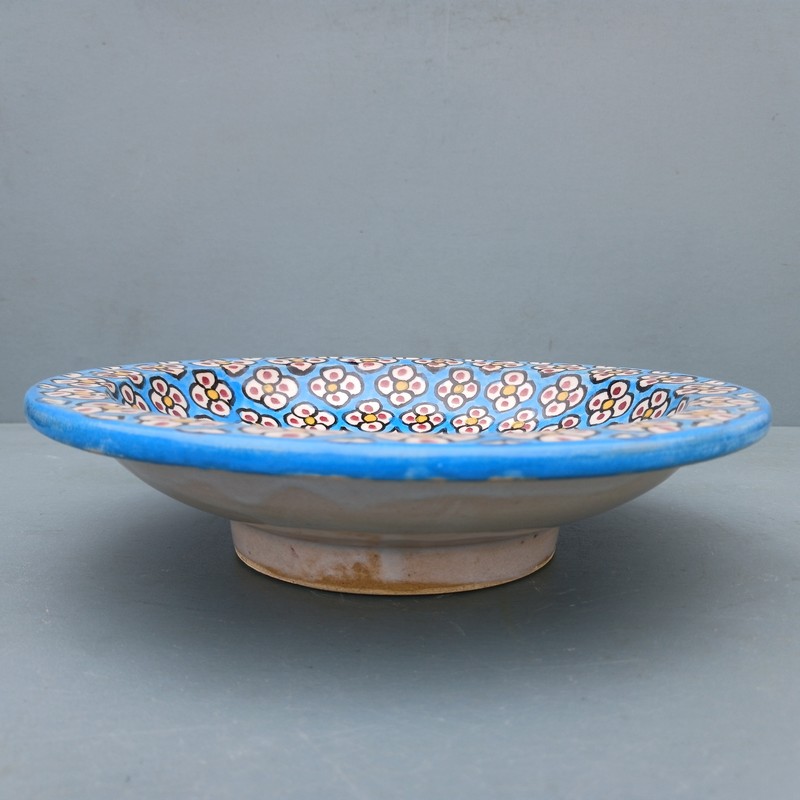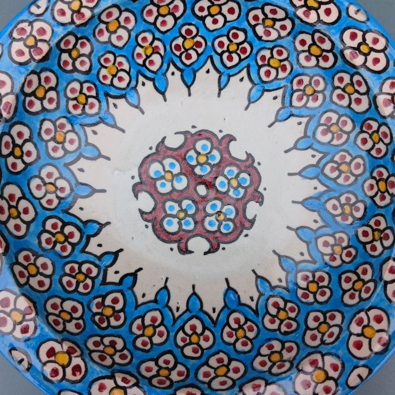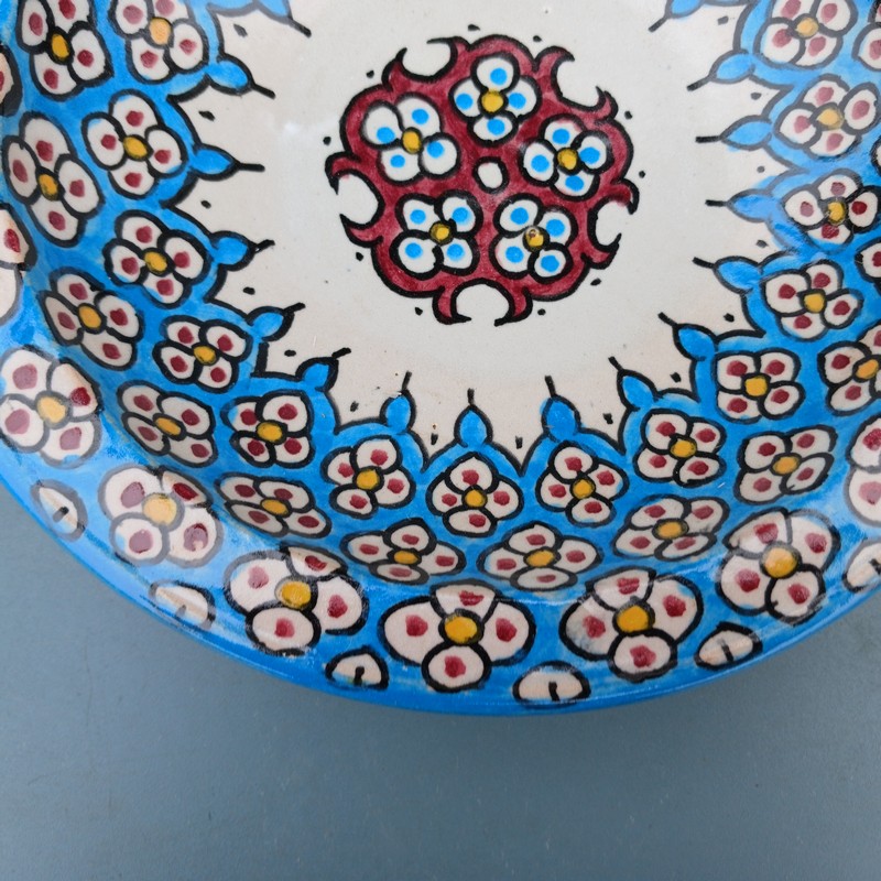 Plato de cerámica marroquí hecho y pintado a mano por los maestros alfareros de la ciudad de Fes. Ideal para decorar una estancia, colgar en nuestro patio o servir nuestra comida favorita.