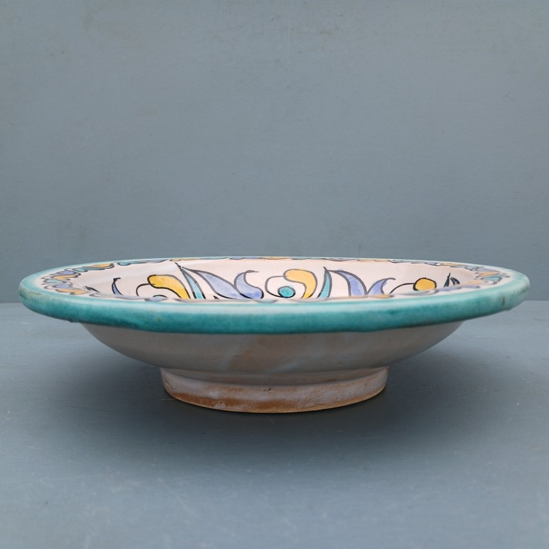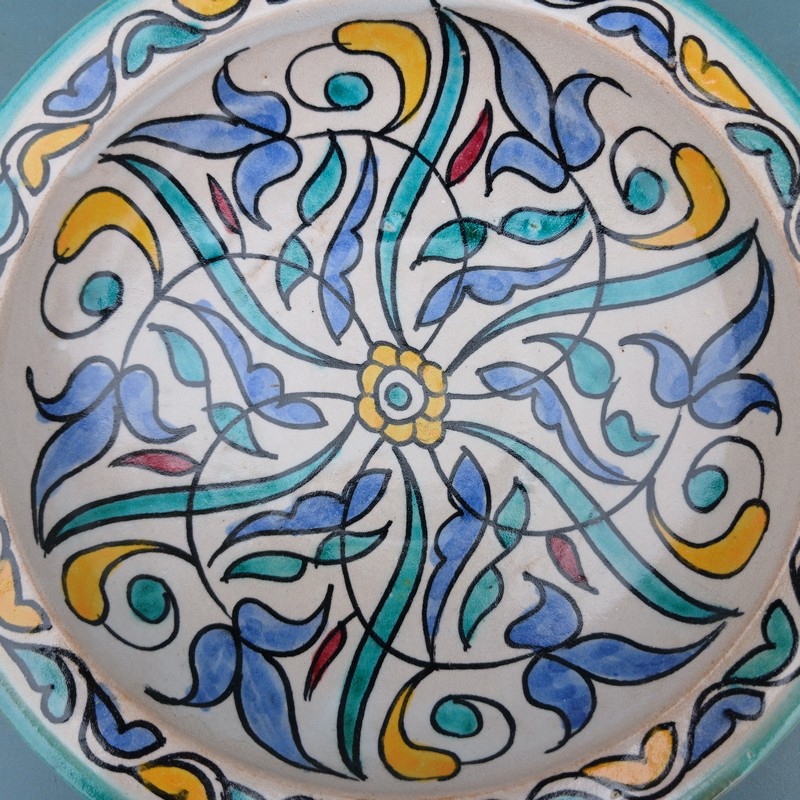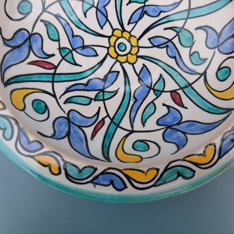 Plato de cerámica marroquí hecho y pintado a mano por los maestros alfareros de la ciudad de Fes. Ideal para decorar una estancia, colgar en nuestro patio o servir nuestra comida favorita.