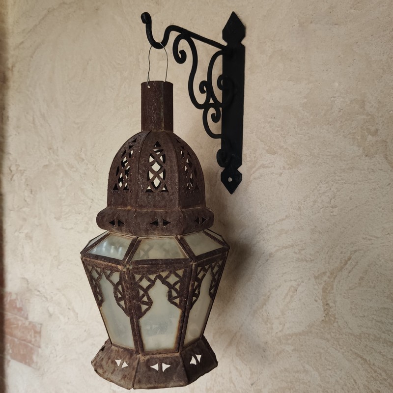 Soporte de forja hecho por artesanos del Haddadin de la Medina de Marrakech. Ideal para colgar un farol o lámpara.